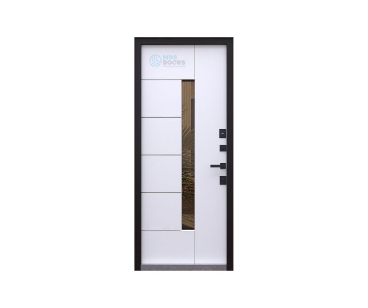 Модель выполнена из прочного металла с декоративными панелями и вертикальной стеклянной вставкой. Современный минималистичный дизайн гармонично сочетается с архитектурой частных домов и современных зданий.