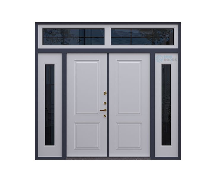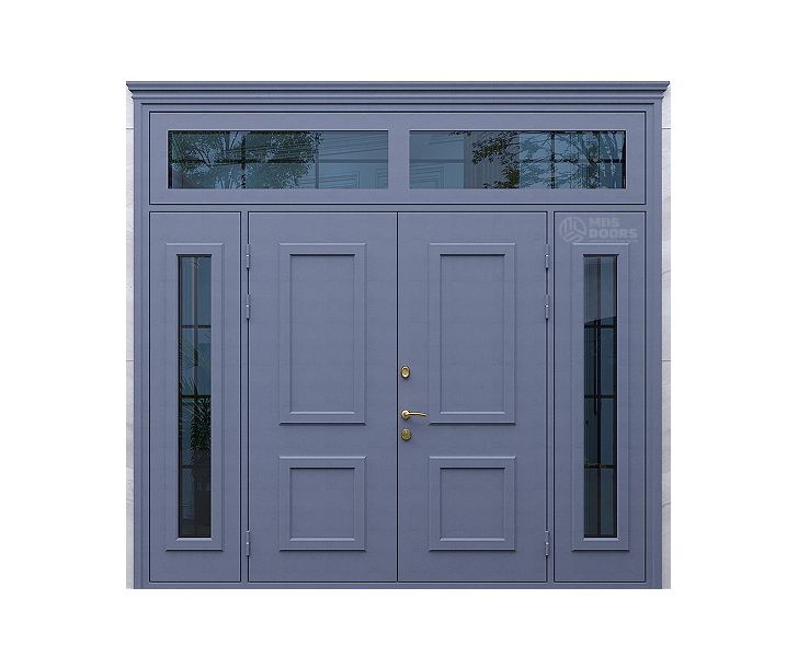 Входная металлическая дверь «Агора» от MDS DOORS с боковыми и верхней фрамугами — это надежное и эстетичное решение для оформления входной группы частного дома или коттеджа. Двупольная конструкция и симметричный дизайн придают двери солидный, статусный внешний вид, подчёркивая архитектуру фасада.