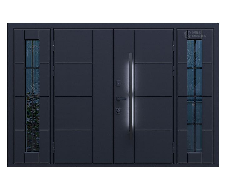 Модель «Бастион Хайтек» с боковыми фрамугами разработана для ценителей современного дизайна, минимализма и технологичности. Чёткие линии, лаконичные формы и продуманная конструкция подчёркивают стиль Hi-Tech и гармонично сочетаются с архитектурой современных домов.