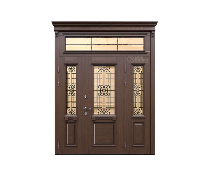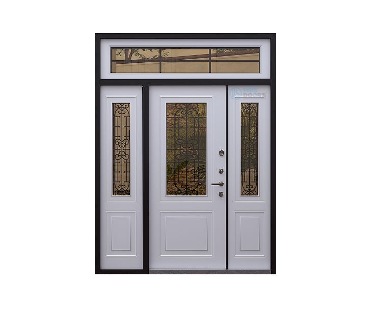Входная дверь «Fusion сложный» с фрамугой, боковым остеклением и терморазрывом